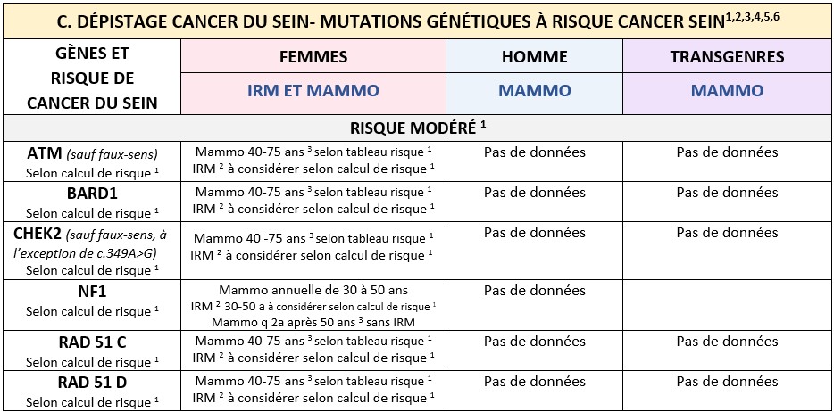 Pour les gènes de RISQUE MODÉRÉ : Suivi adapté au calcul de risque,