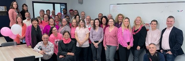 Dans le cadre du mois d’octobre, dédié à la sensibilisation au cancer du sein, le Centre de coordination des services régionaux (CCSR) du Programme québécois de dépistage du cancer du sein (PQDCS) de la région de la Capitale-Nationale a invité les équipes du CHU de Québec-Université Laval, ainsi que ses partenaires à porter du rose lors de la Journée rose PQDCS 2025.